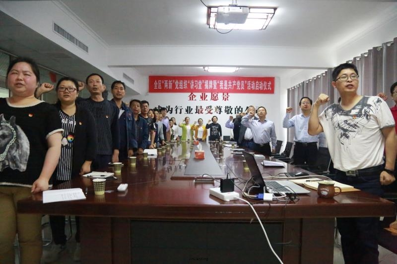 2018年5月10日,區(qū)委書記謝勝、區(qū)委組織部部長傅大斌等領(lǐng)導(dǎo)來我公司主持了“兩新”組織“講習(xí)堂”掛牌儀式。掛牌儀式結(jié)束后,區(qū)委領(lǐng)導(dǎo)和公司在家的全體黨員在公司高級顧問黃躍文同志的帶領(lǐng)下重溫了入黨誓言,區(qū)委書記謝勝給全體黨員和高管上了一堂黨課,闡述了當(dāng)中央對民營經(jīng)濟(jì)的定位以及對產(chǎn)權(quán)的保護(hù),指出了黨組織可以在民營企業(yè)中發(fā)揮的作用以及如何發(fā)揮作用,公司黨員在黨課結(jié)束后深感振奮。區(qū)委及區(qū)委組織部領(lǐng)導(dǎo)在與公司黨支部溝通時(shí),對公司黨建工作表示了充分肯定,并對公司黨支部下一步工作重點(diǎn)作出了重要指示。