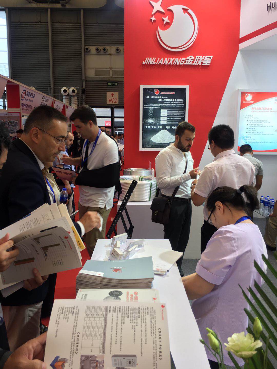 近日,公司攜全新一代環(huán)保型熔劑GFLUX顆粒狀熔合精煉劑、環(huán)保型MINI金屬添加劑、鋁鍶合金卷材等新產(chǎn)品參加上海鋁展。在這些新產(chǎn)品中,GFLUX顆粒狀熔合精煉劑和MINI金屬添加劑在鋁合金熔煉和生產(chǎn)過程中不向大氣排放煙塵及含氟廢氣等對環(huán)境又惡劣影響的排放物,能確??蛻粼阡X合金生產(chǎn)過程中達(dá)到環(huán)保排放要求。鋁鍶合金卷材可用于以“喂絲法”添加鋁鍶變質(zhì)劑生產(chǎn)工藝,有利于減輕鋁合金生產(chǎn)企業(yè)工人勞動強(qiáng)度,提高鋁合金生產(chǎn)企業(yè)工作效率,同時(shí),自動化的添加工藝可以使鋁鍶變質(zhì)劑的添加更均勻,更精確,有利于提高鋁合金產(chǎn)品品質(zhì)。